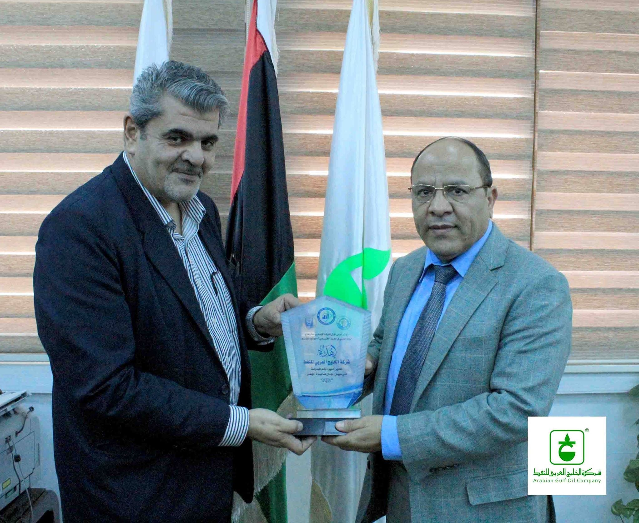 وقدمت رئاسة المؤتمر درعاً تكريمياً وشهادات تقدير باسم شركة الخليج العربي للنفط وكل من ساهم في إنجاح المؤتمر الذي أقيم في الفترة 16-17/11/2019 بجامعة بنغازي.