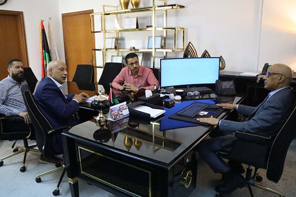 Mr. Faraj Hasba, a member of the Management Committee for Human Resources, Supply and Services, met on Wednesday morning 2022/04/06 in his office with Mr. Bashir Rashwan, Director of the Training Department, in the presence of Mr. Mohammed Zeid, Technical Development Coordinator, and Mr. Bahaa al-Din Al Mansouri, Coordinator of Administrative Development.