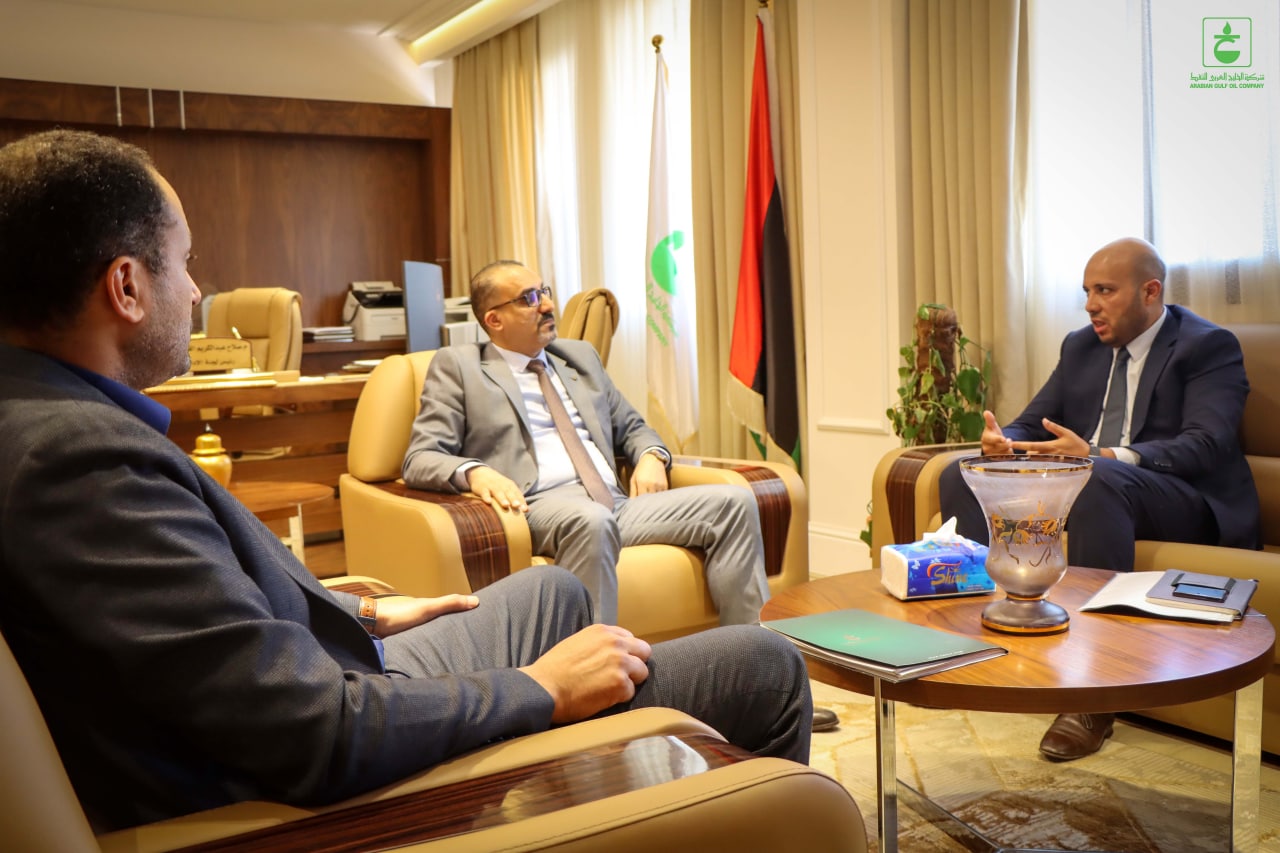 Mr. Salah Al-Qtarani, Chairman of the Management Committee, held a meeting on Sunday morning, 2022/07/03, in his office at the headquarters of the Arabian Gulf Oil Company in Benghazi with Mr. Siraj Bousnaina, Director of Schlumberger Benghazi Branch, in the presence of Mr. Ashraf Al-Warfli, Director of the Department of Finance.